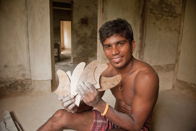One of the locals, Kamrul Hasan, now making surf fins. Photo by Jordan Dozzi. |