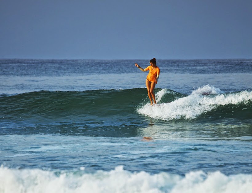 "A lot of shops will try to sell lady surfers their most all-around 'easy to ride' model which is usually something like an 8'0 egg shape with down rails and a hard-edge and 3 fins. This board will not noseride like a proper log nor will it go fast down the line or turn in the pocket like a shorter shape, so you end up stuck in the middle where you only catch 1 out of 5 waves and only get to stand there and draw a straight line down the wave. Boring!!!" Margaret says.