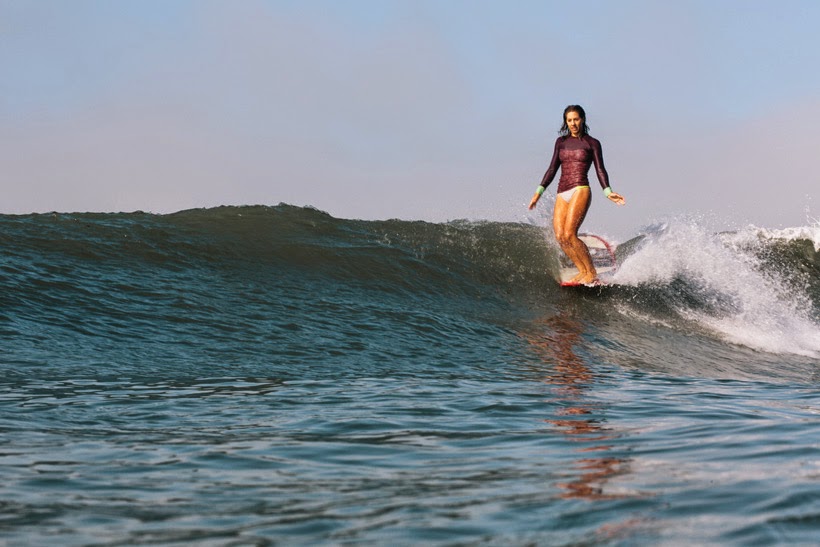 When I was learning, I pretty much only surfed with guys.The [girl] friends I surf with are hands down the biggest influence on my surfing style. I feel so lucky to have a super talented group of friends that enjoy surfing together. We try new things, get creative and push each other to try new moves.