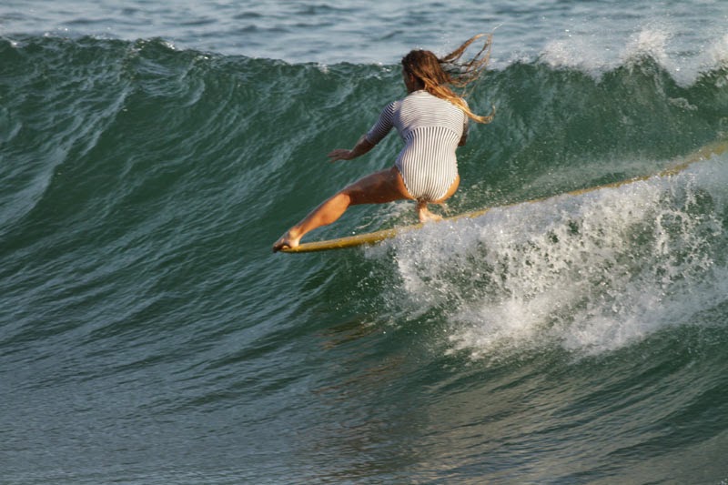 It was the first time I’d met and seen Lola surf, and I sat mesmerized in the lineup by her posture and creativity while riding. Karina and Mele both shared epic performances in perfect waves in front of a huge crowd on finals day, showing the longboard community that women are uniquely gorgeous perched on the nose in the pocket. Hallie impressed everyone with her seamless transitions between goofy and regular nose rides, with a technicality and style we may only elsewhere see in CJ Nelson. Each of these ladies carries an elegance with her surfing; surfing for her soul and camaraderie with the ocean and her friends above all else.