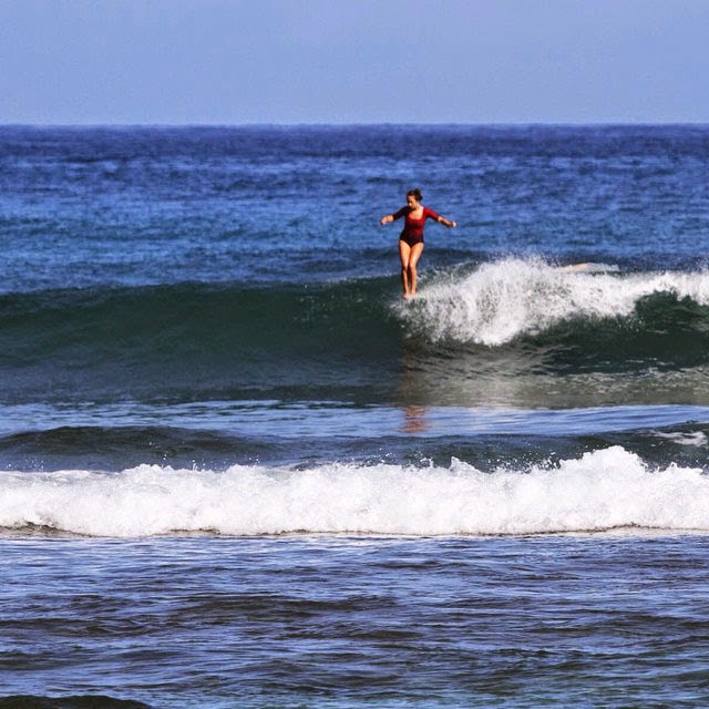 | Mele wears the Hermosa in Earth Waves, riding her Bing longboard. Photo by Nick LaVecchia. |