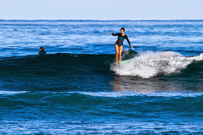 Carla Rowland has been the most influential in my surfing style. All of the ladies at First Point in Malibu have been so influential on my surfing: Carla Rowland, Eveline VanBrande, Anna Osborne, Margaret Calvani, Andrea Kabawso and Erin Ashley. Britt Harris in Hawaii has influenced my surfing to charge bigger waves and Rosie Aldridge has helped push and encourage me and been a good new friend in Hawaii.