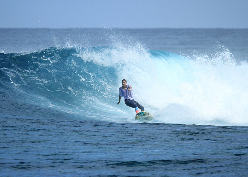 Danny still surf guides in the Maldives and Mentawais, and hosts a few all-girl retreats per year. Operated by Liquid Destination, one flat fee covers nearly everything from the time you arrive at the airport in Mali (you’ll be fetched at the gate by a Liquid Destination guide), including meals, accommodations, and boat transportation to the best surf breaks. In the Maldives, there are 26 Atolls and 1190 islands. Yeah, let them do the math to factor in the best spot for the swell, wind, tides and weather and the toughest decision you’ll have to make is what to wear. Danny urges that you should be comfortable surfing reef breaks.