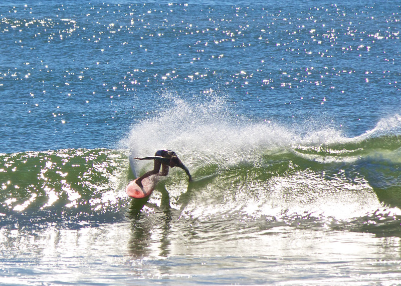 | Chrystal staying low in the San-O. Photo by Joel Fitzgerald. |