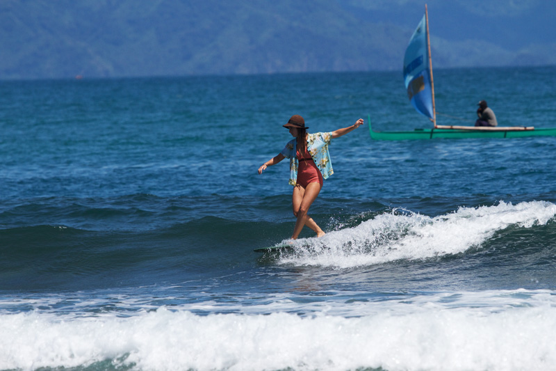 Philippine Wahine Classic Event that unites surfers from established communities with the local line up. This event takes place on the opposite coast from her home, in Baler, Aurora. Baler's coconut tree-laden terrain faces the Western Pacific Ocean and has a handful of very different, quality waves within a short driving radius.