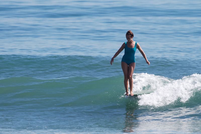 Taylor with all ten toes over the nose, wearing the Tofino in Blue Tide. Photo by Ian Zamora.