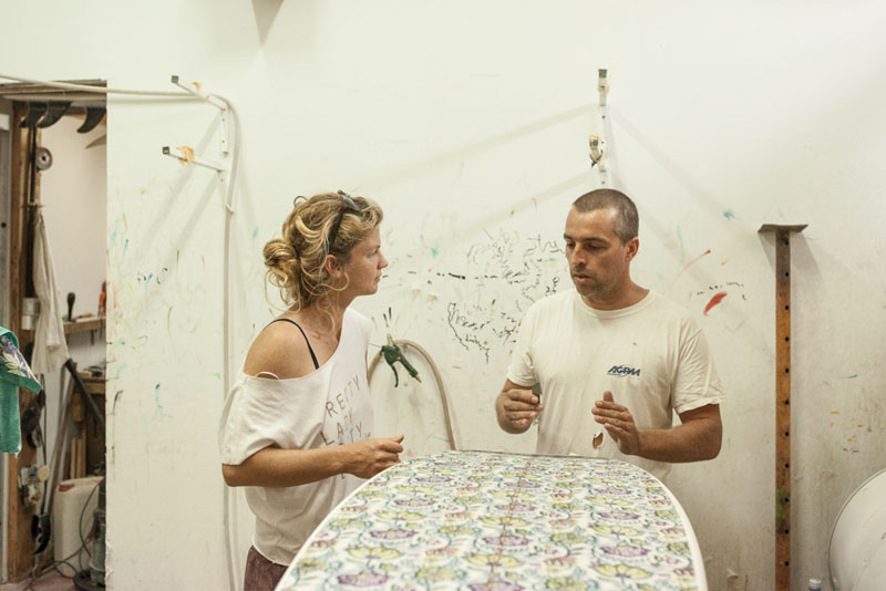 Farm to table version of surfing: shaping your board and then surfing it. Leah Dawson shapes her second board at the Joyas Surfboards workroom. Photo by Mauro Ladu. |