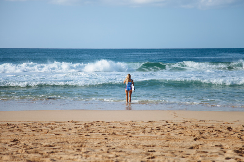 “In Hawaii, being in a bikini is so freeing in and of itself also. Sunny days or rainy days with rainbows overhead makes the island lifestyle such a dream. The moments where sessions are effortless and it’s just me and the ocean is why I surf. Surfing has curated an amazing lifestyle for me. Lately I've been realizing as I'm getting older how blessed I've been and how excited I am daily to share my stoke with people.”