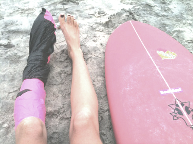 Sarah sliced her foot with the fin, but guess what? she went surfing the next day. |