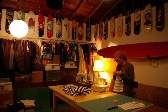 Here are a few shots from "the lab", a.k.a., the Craft & Quiver room. It's a great mix of man cave & sample room, and it's where all Seea suits first come to life!