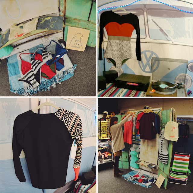 Pretty sweet little set up huh? We kept the tunes rolling all day, and the VW tent was a smash hit! We even brought some of the new summer suits out to play. Look for the Hermosa one piece (top right) and the special colorways of the the Doheny rashguard (bottom left, Surfindian exclusive), due out in March/April!