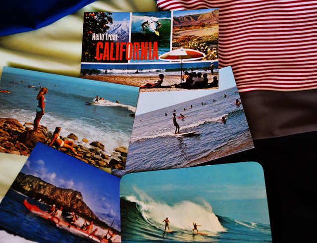 With the Launch LA tradeshow just around the corner, we've been crazy busy preparing for the show, including sending out our invites - these beautiful vintage postcards from the 60's & 70's. Filled with awesome vintage bikinis and big wave guns, these classic scenes are great inspiration as we get ready to unveil our SP13 collection, and debut a series of short videos, made expressly for Seea by Tiffany Campbell!