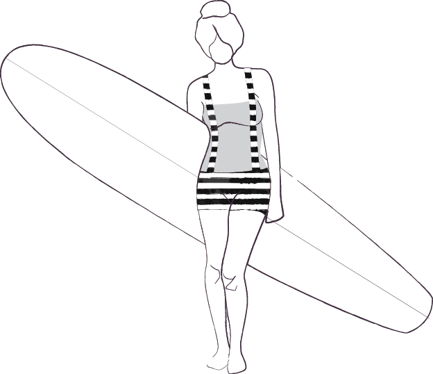 Here are some sketches I made in Spring 2011 before I started producing the suits. I took my favorite surfer ladies photos and made some "paper dolls".