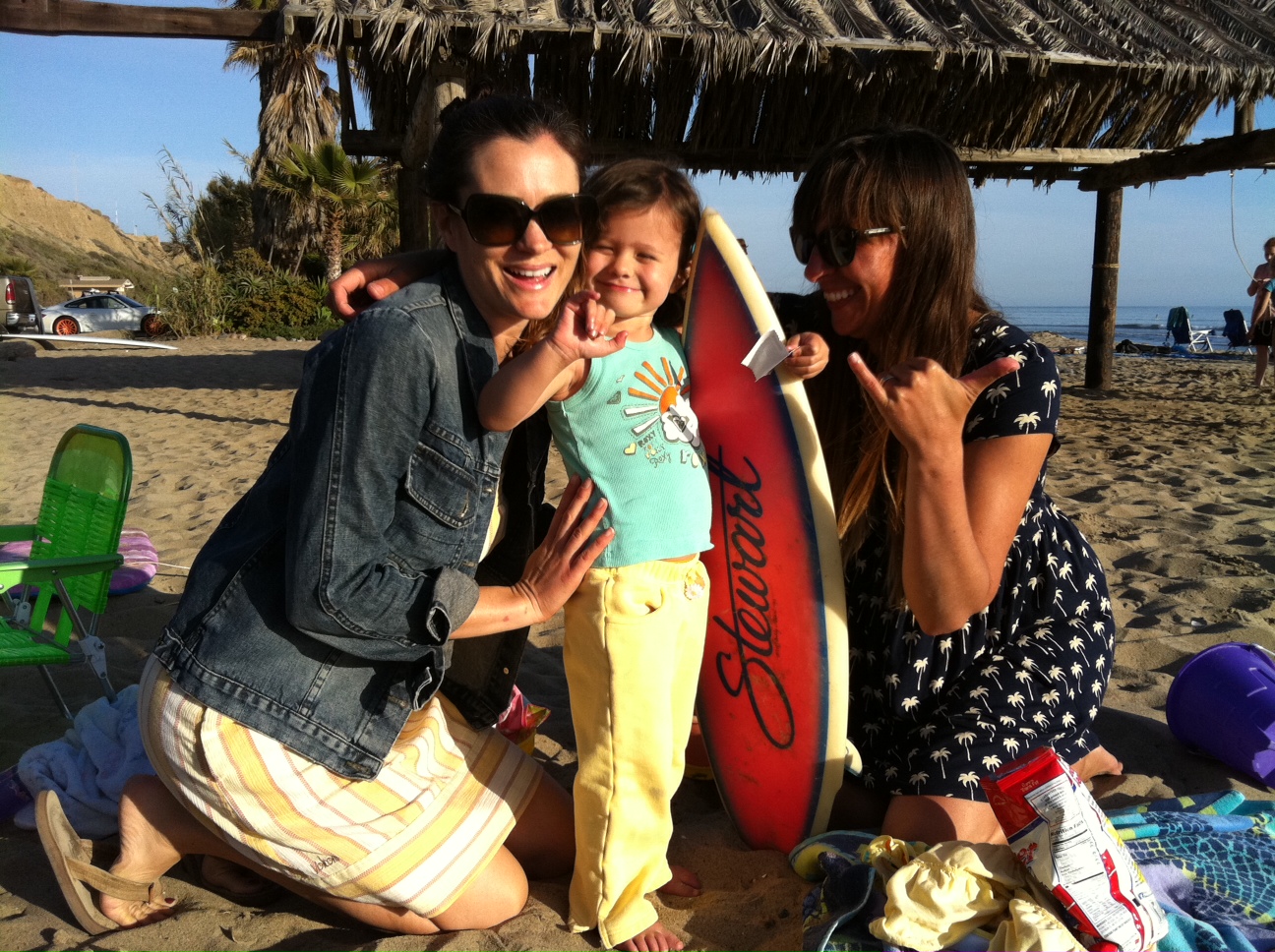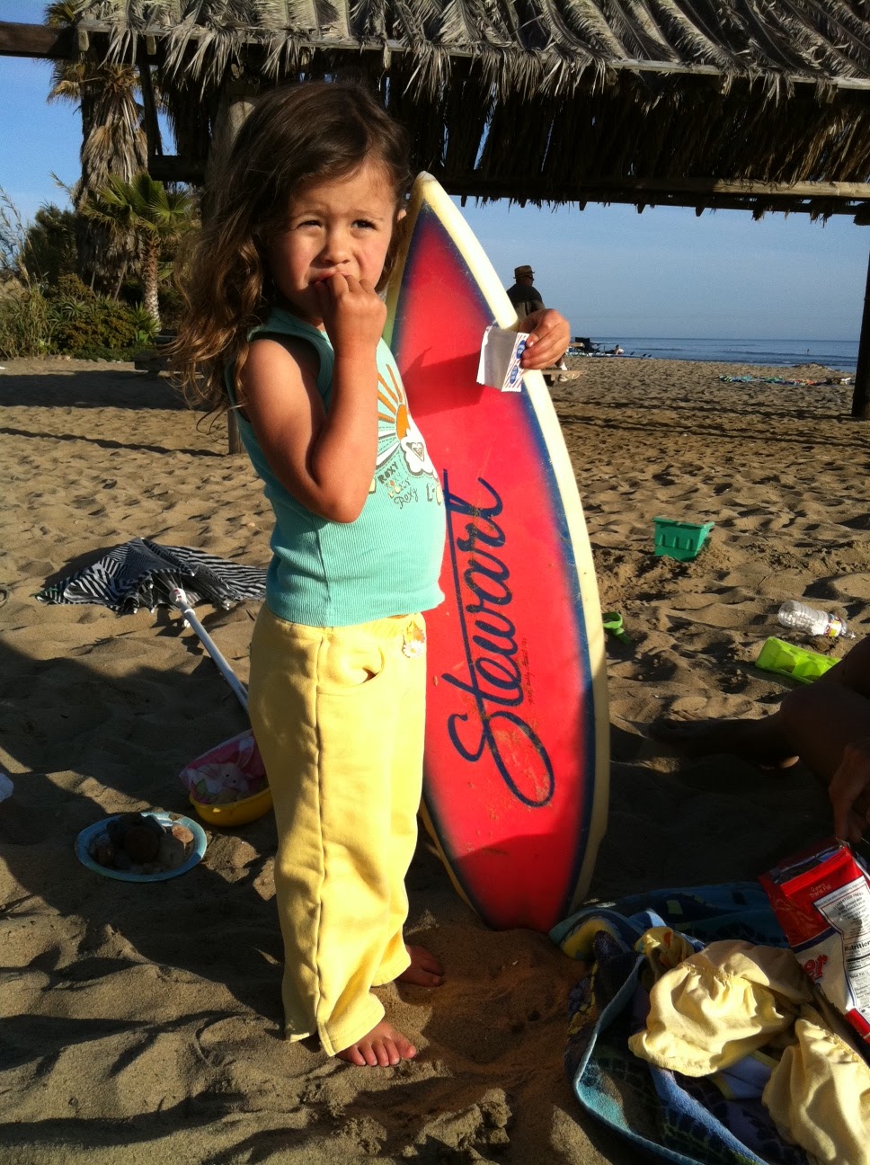 Sunshine and fun waves were on tap at San O over Easter weekend, so when our friends Ashley and Erik invited us out for an afternoon session / BBQ, we were stoked! Their daughter is about the cutest girl we know, and with surfing in her blood (Bill Stewart, grandpa), it came as no surprise that she brought her own board!