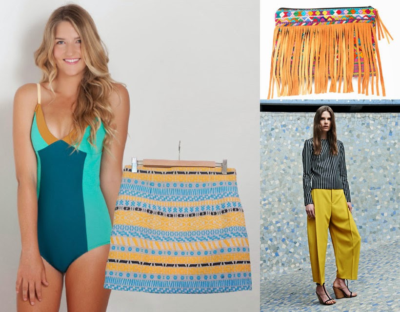 2. Add a skirt or structured men's pants to the Riviera one-piece and it becomes a glamorous bustier. "I like the color mix of the [Chloe pants]. The shape of the pants is masculine, tailored cut, the final look is easy but very elegant. You could wear it for a cocktail party by the pool."