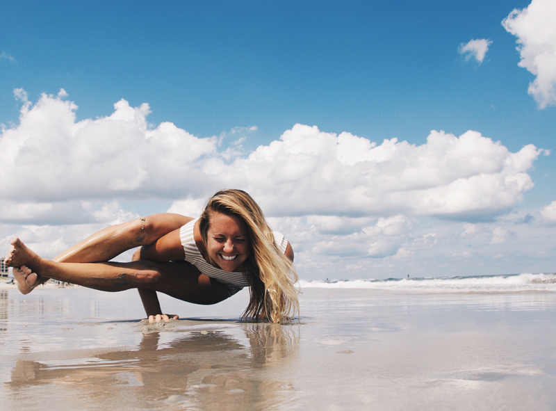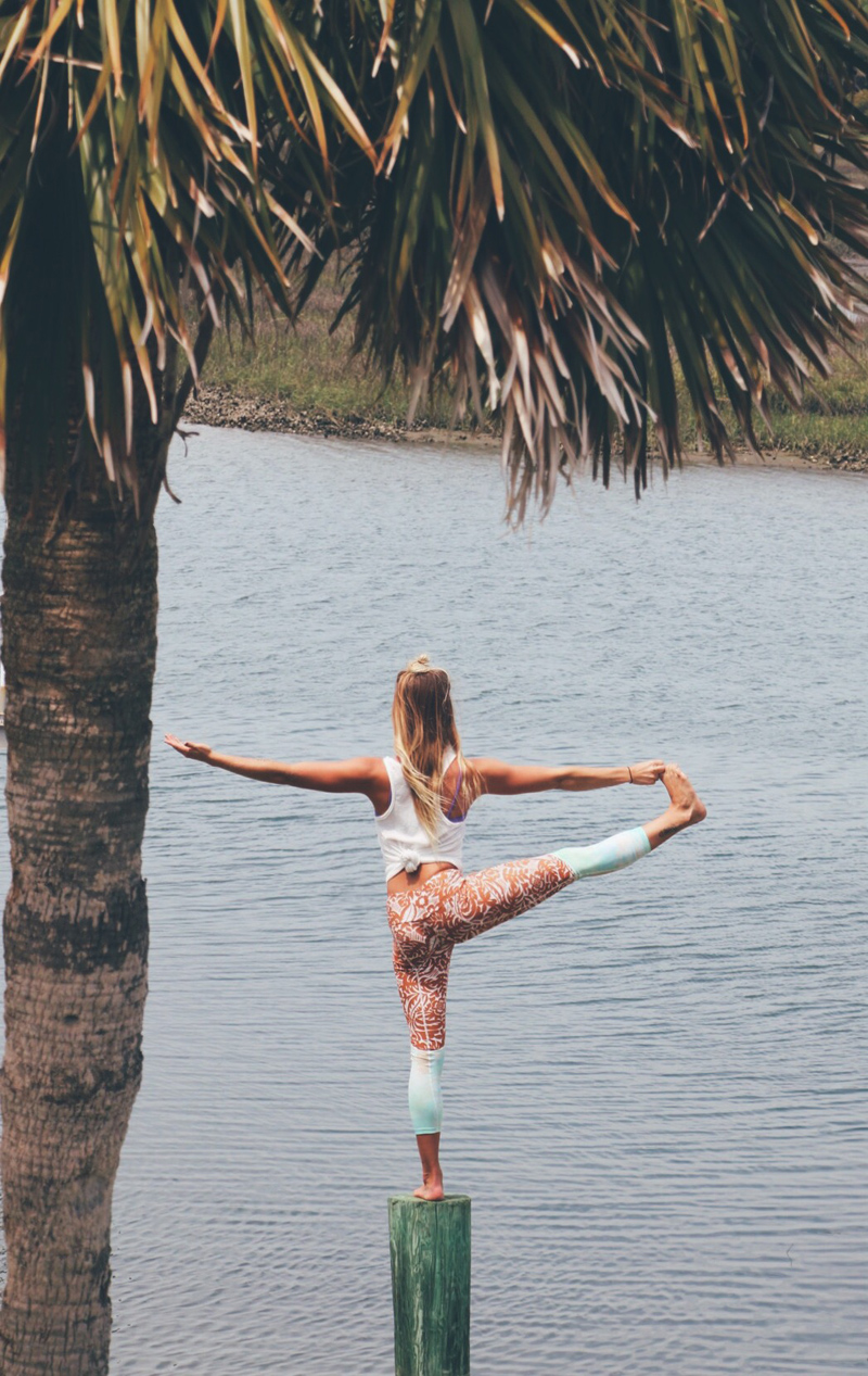 | Life is all about balance. Mixing up her surf routine with yoga, Karson Lewis wears the Calafia Leggings. |