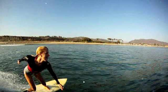 | Amy rolls right on a fun, uncrowded day at Trestles. |