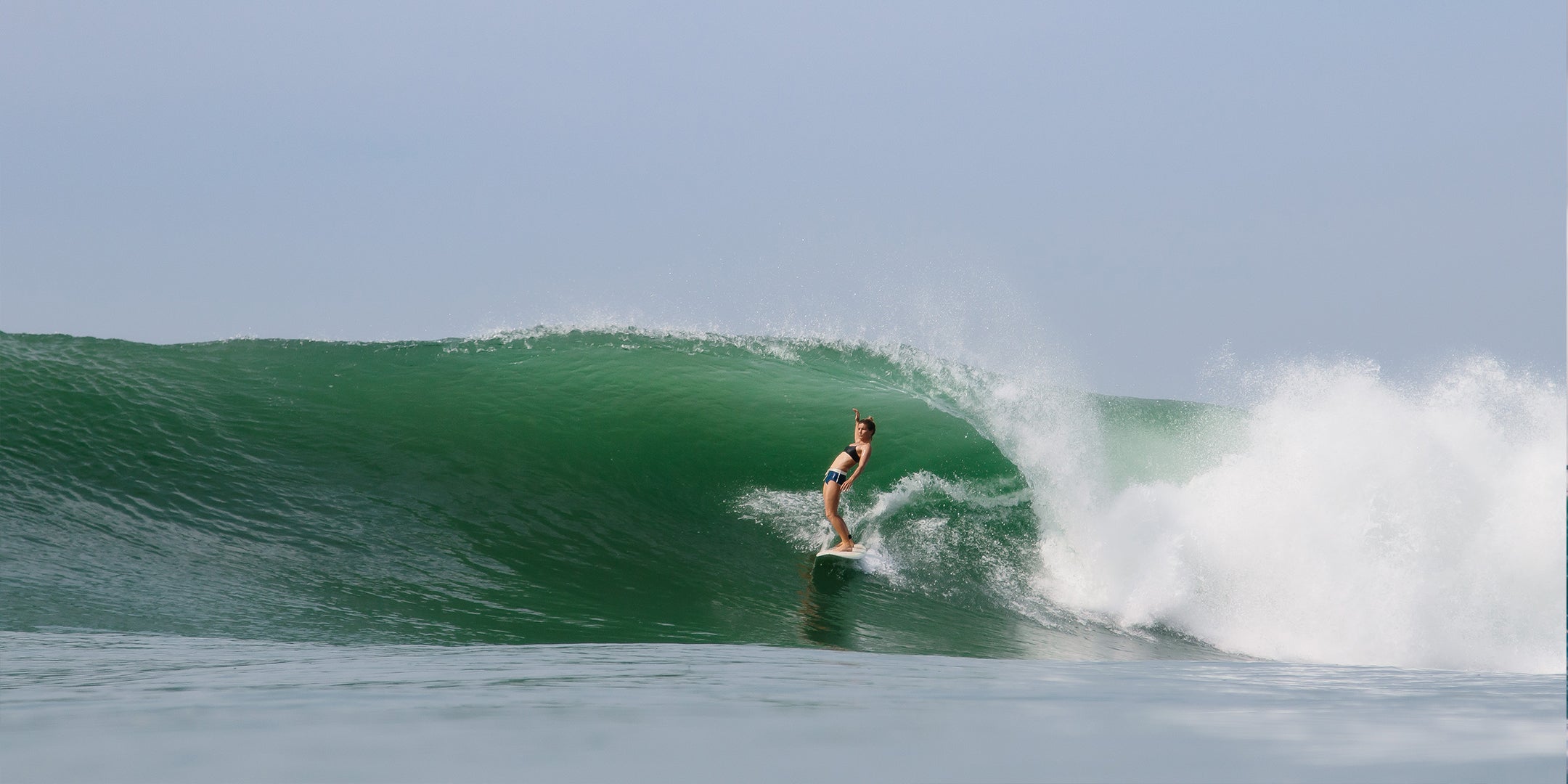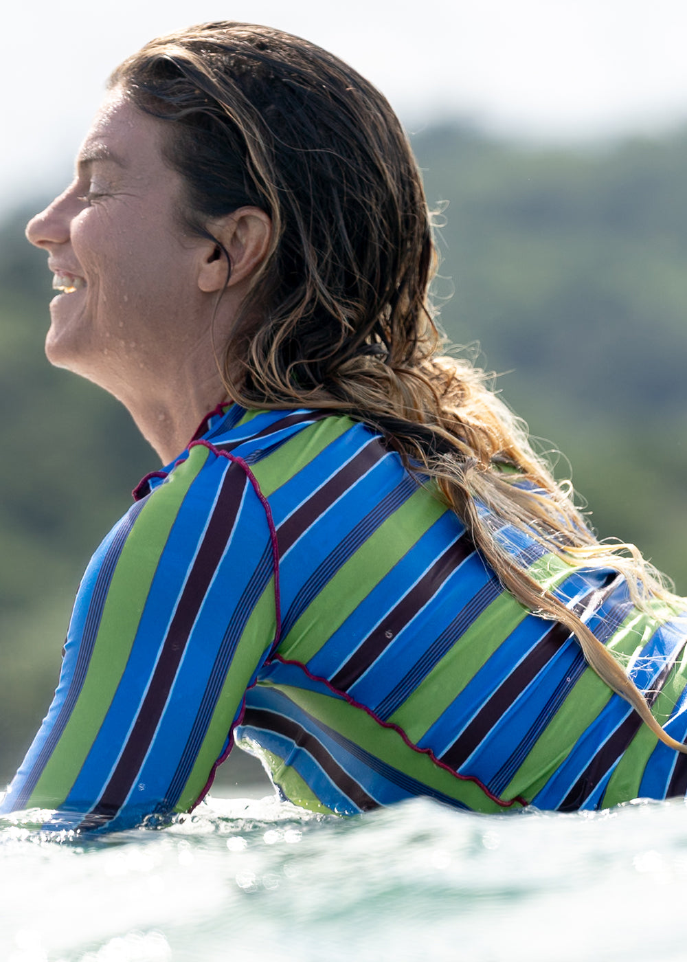 Multi-faceted and one-of-a-kind, Leah Dawson smashes preconceived notions. She speaks with the wisdom and humility of an old soul, but still maintains a childlike wonder. Back in the 2000s, she became known for her career as a women’s longboard division competitor, but today the all-around water woman is addicted to getting barreled while riding weird, vintage single fin boards that would confuse thruster devotees.