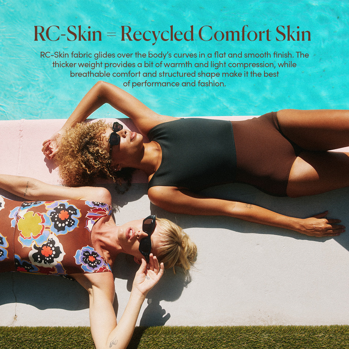 Modern minimalists will appreciate the Lido One-Piece's clean silhouette and balanced color-blocking. With a high neckline, retro cut bottom, and a sultry deep-V back, the Lido in recycled C-Skin fluidly glides over your body's curves.